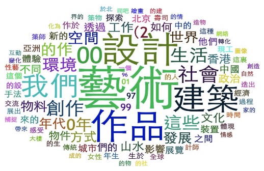 The analysis of the M+ Museum exhibit labels revealed compelling patterns regarding the institution’s thematic focus. Through word frequency analysis and word cloud visualization, several terms emerged as dominant: “Work” (作品), “Art” (藝術), “Design” (設計), “Architecture” (建築), “Society” (社會), and “Culture” (文化).