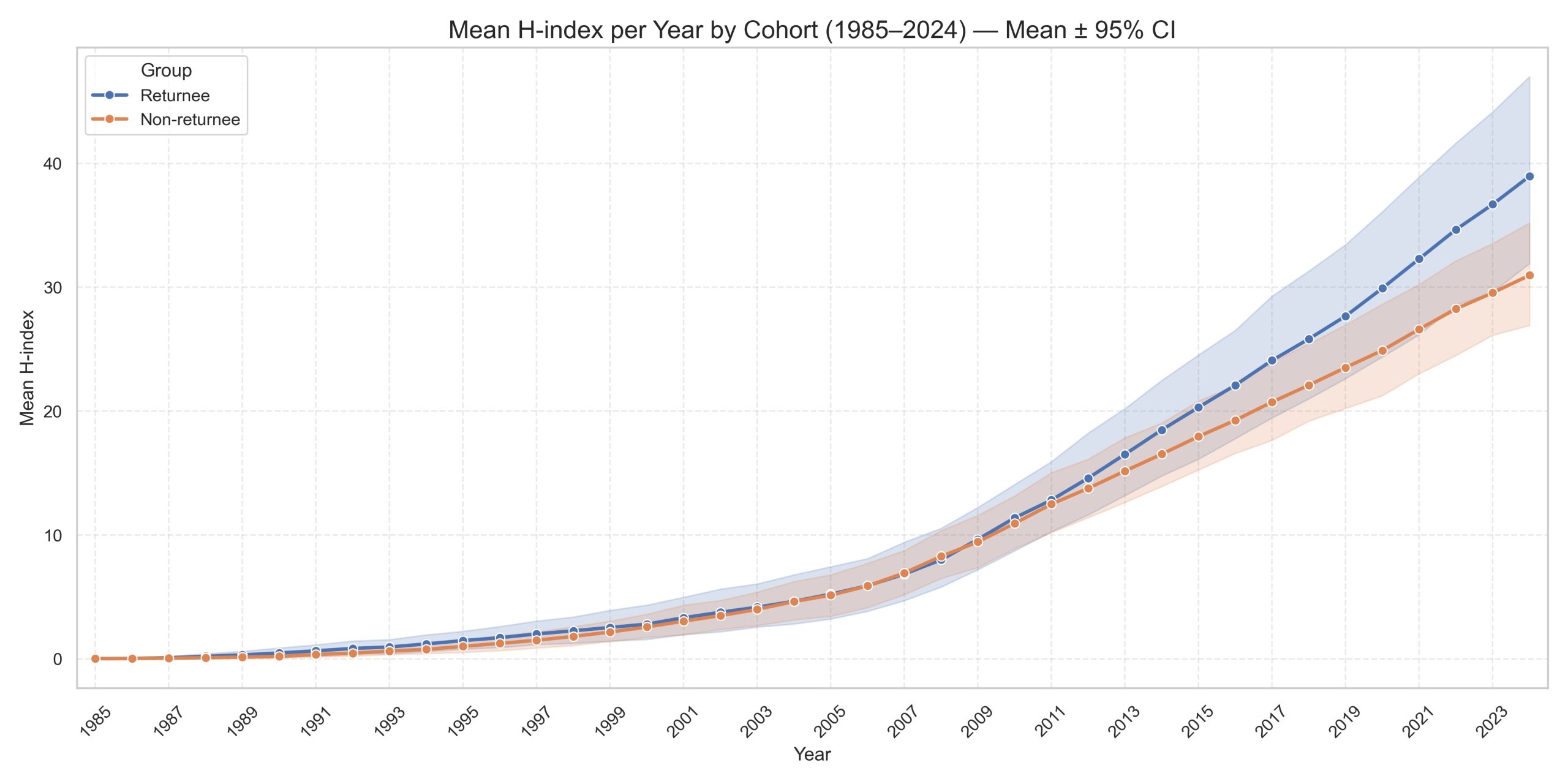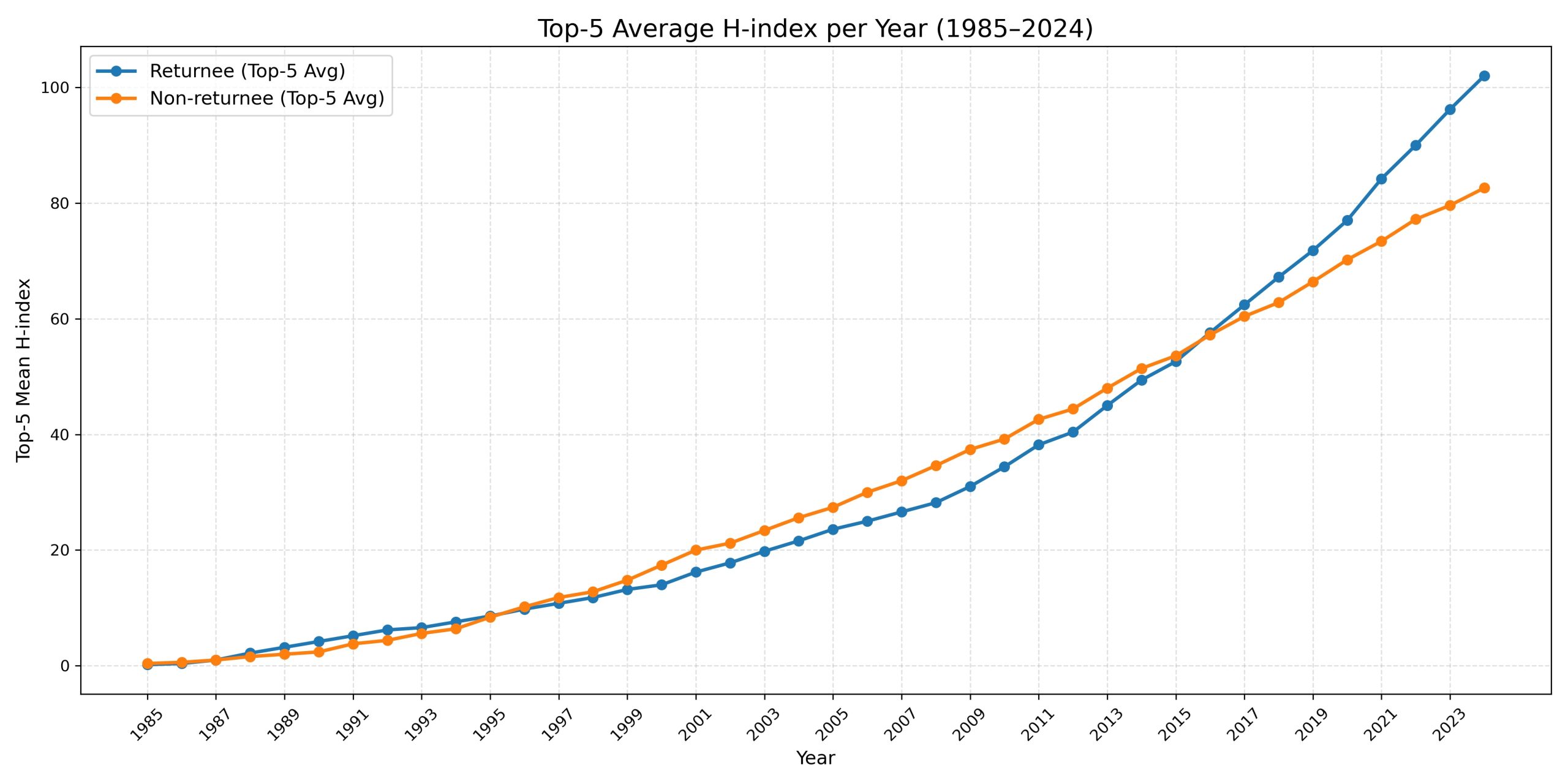 Figure 5: Average H-index trends: Returnees V.S. Non-Returnees Alumni
